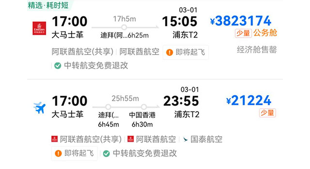 • 大马士革飞往上海机票涨至382万元?